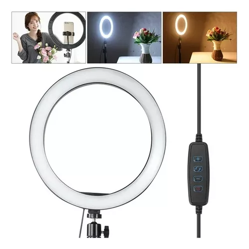 Aro de luz con 3 tonos intercambiables y soporte para celular