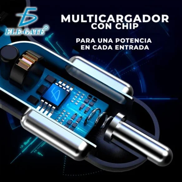 Cargador / plug 4 en 1 para carro, diseñado para ofrecer una solución de carga eficiente y rápida para tus dispositivos mientras viajas. Este multicargador cuenta con 2 puertos USB de carga rápida y 2 puertos USB-C de carga rápida, permitiendo cargar múltiples dispositivos simultáneamente. Su diseño anti inflamable y anti descargas garantiza un uso seguro en el automóvil.