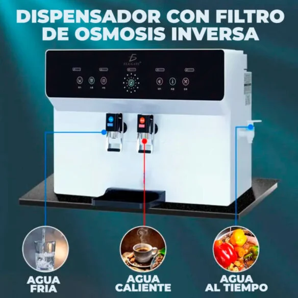 Dispensador de agua fría o caliente y purificador por osmosis inversa de 5 etapas / hog.112