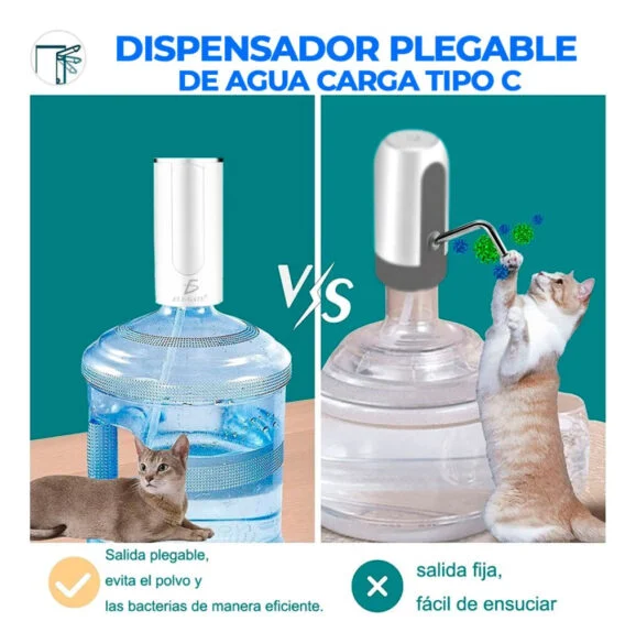 Dispensador eléctrico recargable con boquilla plegable para agua.