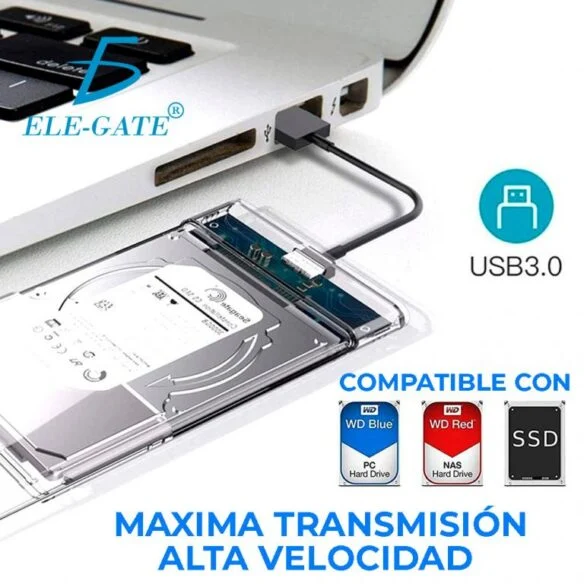 ¿Necesitas una solución fácil y rápida para transferir archivos entre tu computadora y otros dispositivos? ¿Buscas un almacenamiento portátil seguro para tus datos importantes? ¡No busques más! El Gabinete externo para Disco Duro SATA 2.5 a USB 3.0 de la marca Ele-gate te ofrece la combinación perfecta de velocidad, portabilidad y seguridad para tus necesidades de almacenamiento.