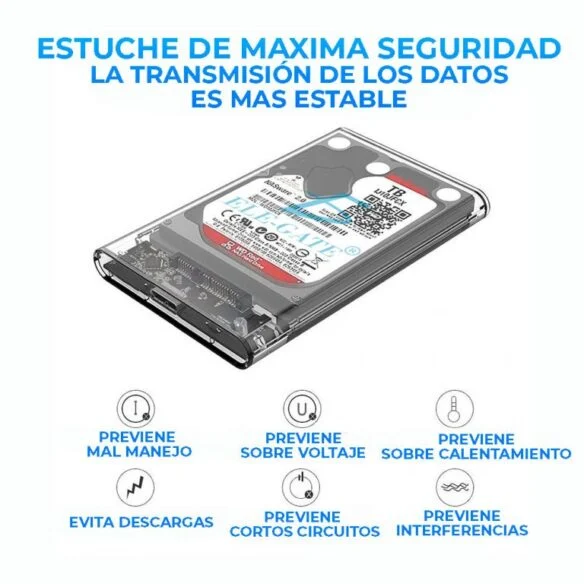 - La carcasa resistente protege tu disco duro de golpes, polvo y rayones.