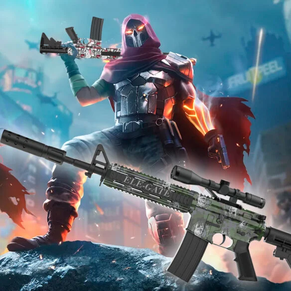 - Accesorios incluidos: Mira, correa , 10,000 abalorios de gel, gafas de protección, cargador de batería, batería recargable, silenciador/extensión de cañón.